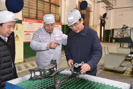 2017年2月23日下午,十堰市副市長王曉、市經信委書記康雙成一行來東風精鑄考察、調研。王曉副市長帶隊饒有興趣地參觀了東風精鑄生產現(xiàn)場與檢測中心,并與杜孔明總經理就東風精鑄未來發(fā)展定位與政府部門職能服務環(huán)境改善等進行了溝通交流。